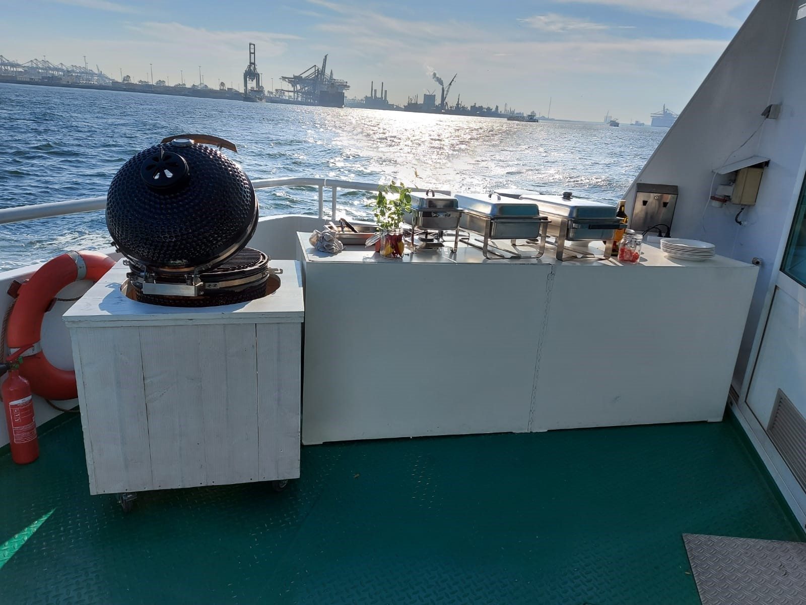 Wij kunnen als enige schip in Nederland met toestemming van de scheepvaartinspectie barbecueën aan boord van het schip. Op het zonnedek zit een gasinstallatie met 4 grote BBQ’s waar de gasten zelf naar hartenlust kunnen bakken en braden, hoe leuk! Aan boord van dit schip bevinden zich mooie diverse ruimtes. Er is een ruime voorsalon met rondzit waar u tevens ook kunt genieten van een schitterend uitzicht. Ook op dit schip bevindt zich een buffet lift, bar en invalide toilet. Aan boord van Parel van de Maas vindt u de sfeervol ingerichte salondekken met in totaal 110 zitplaatsen en een achterdek met overkapping. Daarbij heeft het schip verwarmde ramen zodat er altijd zicht naar buiten is en een compleet ingerichte bar.
