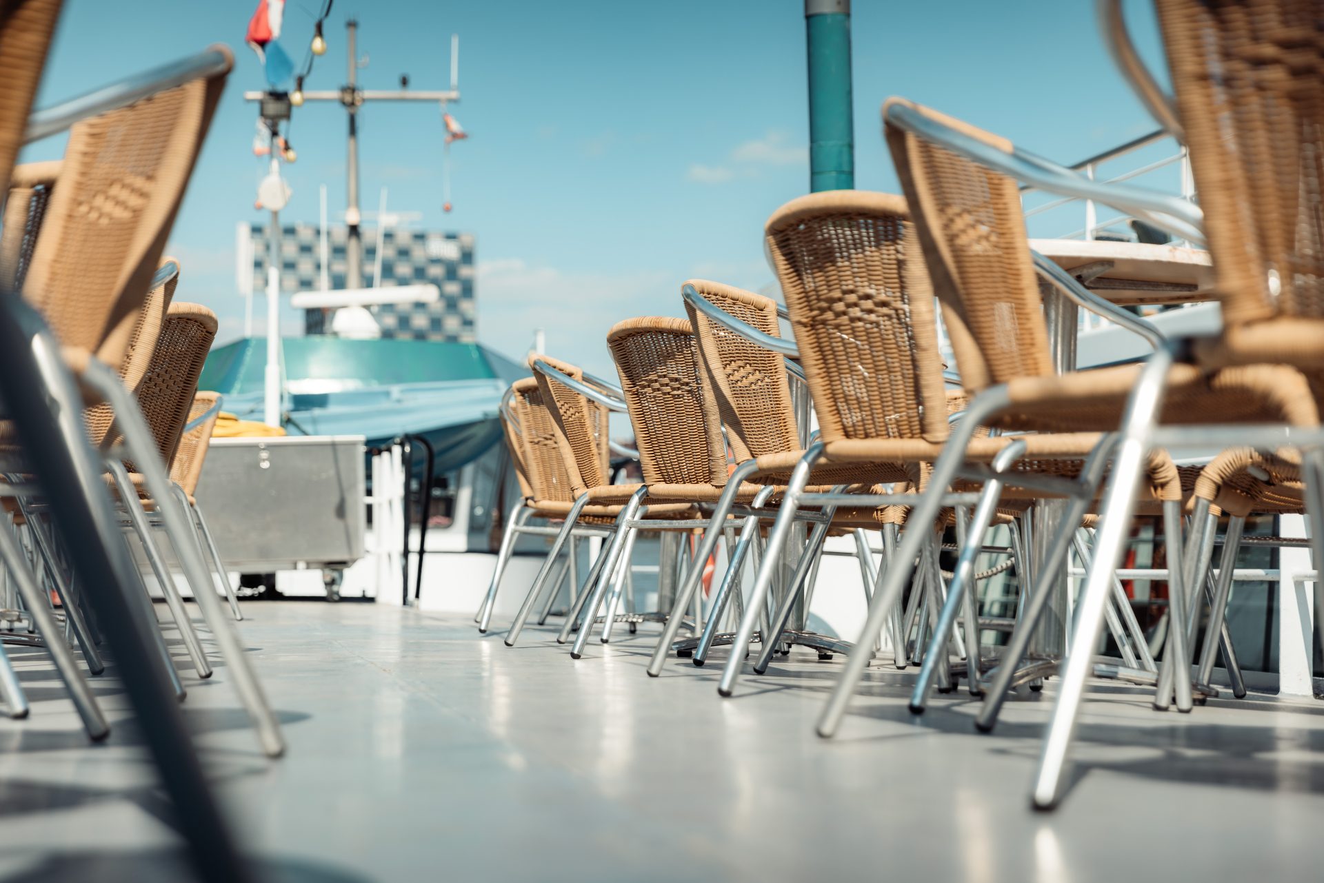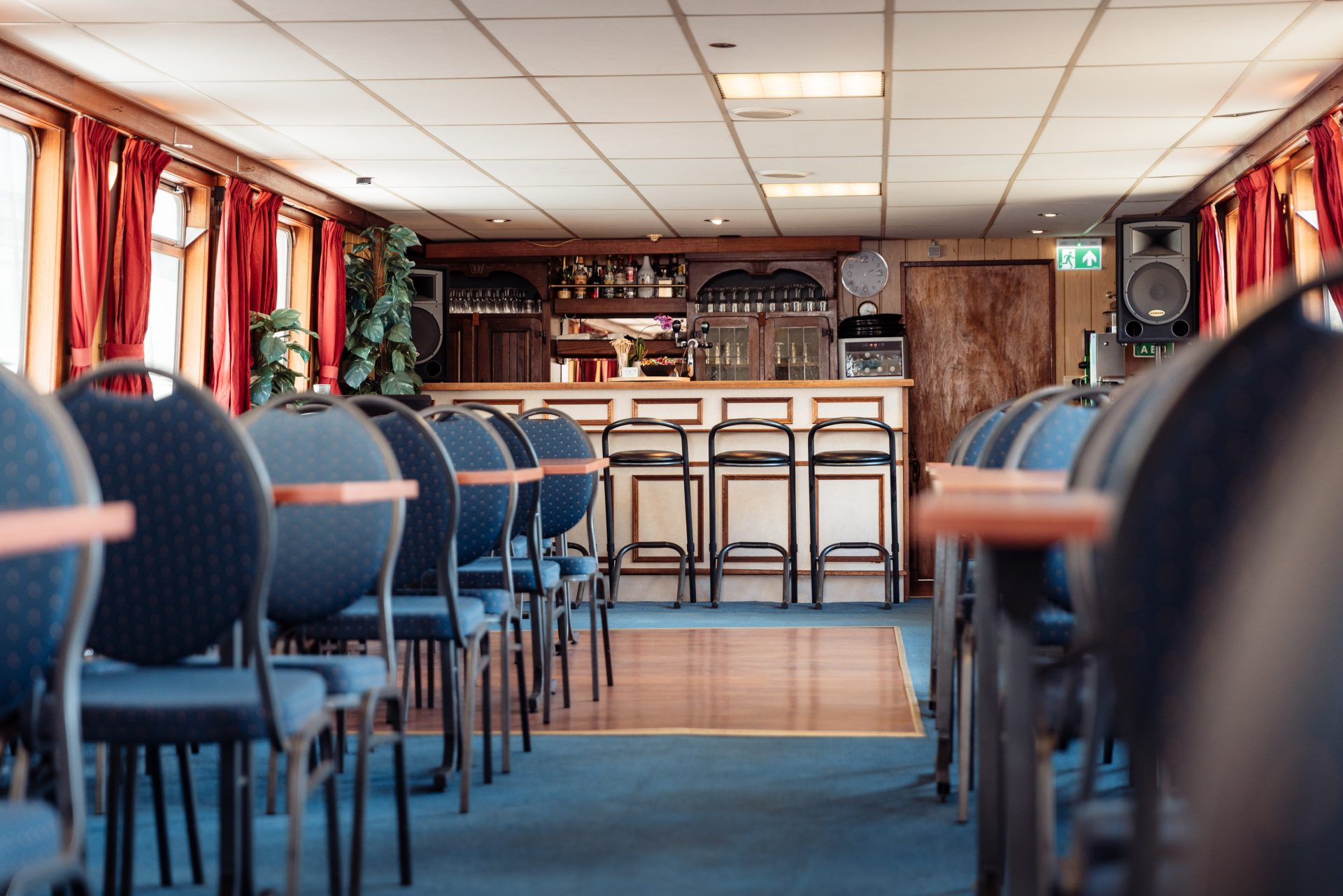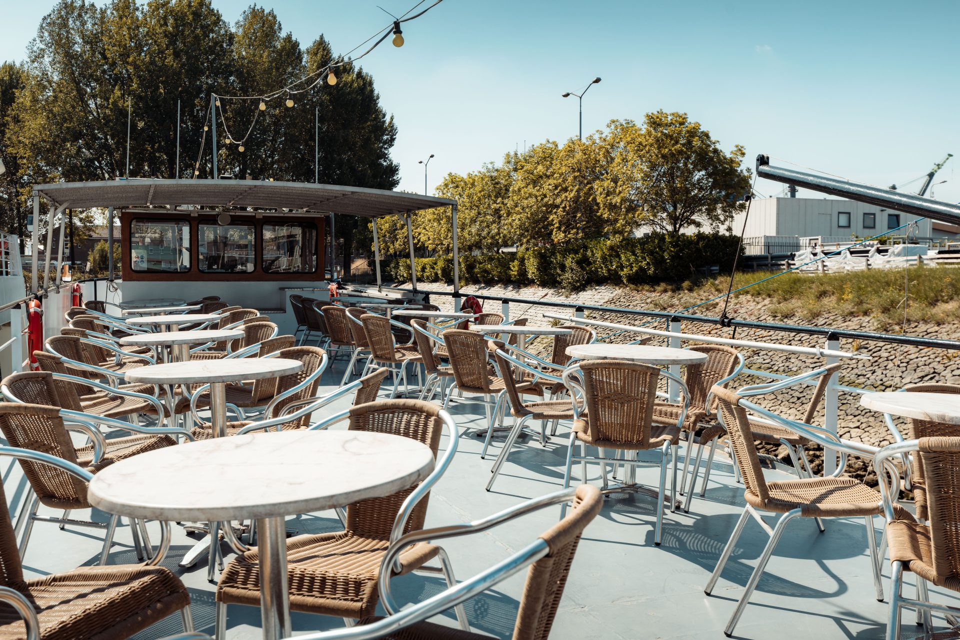 Buiten op het zonnedek hebben wij 100 zitplaatsen, zodat u bij mooi weer, genietend van het uitzicht, de zwoele wind langs u heen voelt glijden. De Gemini 2 is van alle comfort voorzien, zoals een bar met een ruime keuze aan drankjes en een keuken waar een broodje kaas tot een vijf gangen diner of een luxe buffet naar keuze door onze kok worden bereid.